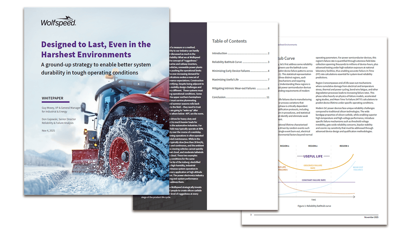 Electrified marine and railway inverters, commercial and heavy-duty vehicles, renewable power plants and pulsed power systems are pushing the operational limits for electric power systems. The ever-increasing demand for system durability in these applications evokes a new set of design challenges and performance expectations. As industries continue pushing the boundaries of electrification into increasingly challenging environments, the distinction between reliable and rugged becomes the difference between systems that function and systems that endure. We enable our customers to design longer-lasting systems to perform in tough operating environments with products delivering ruggedness at every stage of product life cycle.