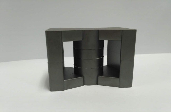 The main transformer of the CLLC converter is designed to meet the requirements of both 450V/14.67A and 366V/18A output. The max flux density and core loss are designed for and verified at 425V DC-link and 450V/14.67A output. The winding wire size is designed for maximum current conditions with a 366V/18A output. With a bobbin-less design, the window area of the core can be fully utilized. Next, a PQ5040 core using 3C97 material is selected for the 6.6kW CLLC converter. To meet the gain range requirements for 250V-450V battery in both charging and discharging mode, a 1:1 turn ratio is selected. As shown in Fig.3, to minimize the power loss caused by eddy current, the distributed air gaps are designed at center leg of the core. 14 turns triple isolated 400-strand AWG-38 liz wire is designed as both the primary winding and the battery side winding. A 60uH magnetizing inductance is selected to ensure the ZVS of CLLC MOSFETs.