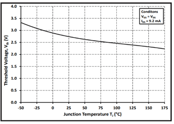 电压和电流的电特性与结温直接相关。例如,VGSth会随着温度的升高而下降(如图3所示),进而可能引入误开启的风险,降低整体可靠性。RDS(on)也随结温升高而升高,随栅极电压而降低。对于SiC元件,RDS(on)、温度和栅极电压的关系比传统的Si MOSFET要“平坦”得多,这将减少失控条件的风险。