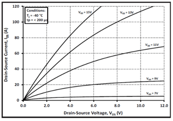 图6展示了VDS, IDS和VGS之间的典型关系(并非线性关系)。最好是在15V VGS下运行三代碳化硅MOSFET。