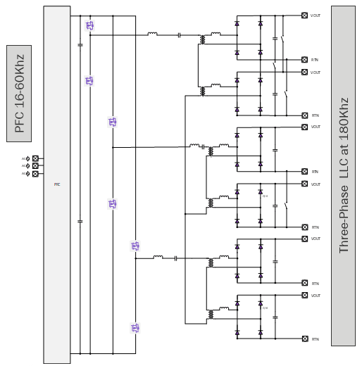 拓扑 4 –(DC-DC):30 - 60 kW 3 相 LLC 单向 DC/DC 转换器